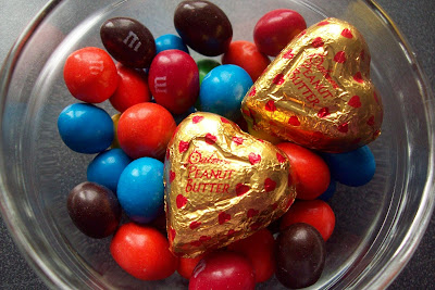 M & M's and peanut butter hearts.
